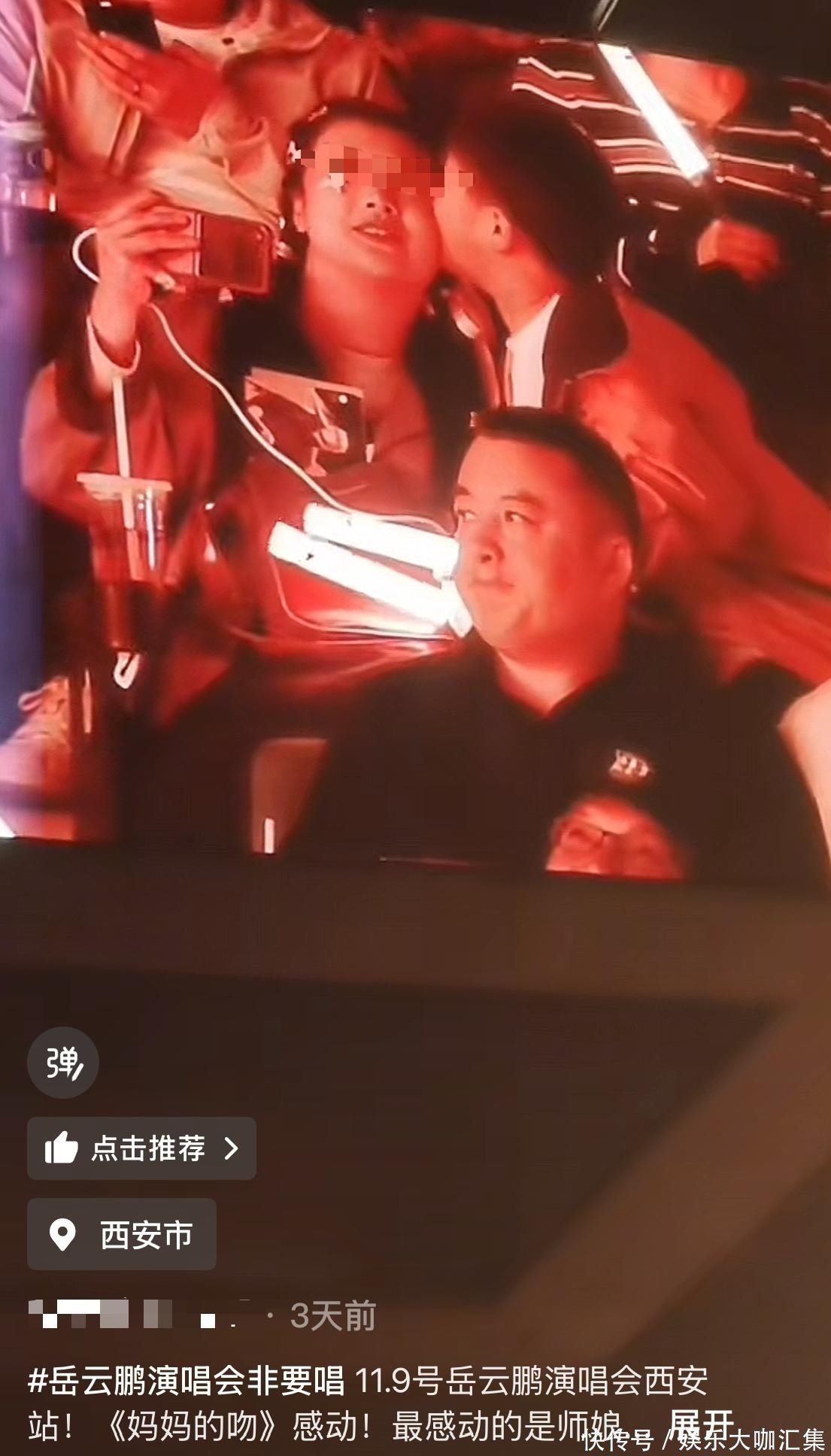 正因这首歌的主题紧扣“母爱”,导演组顺势将镜头转向王惠母子。每当画面切过来,郭汾阳便配合地亲吻妈妈一次,前后共四次,引得四周观众忍俊不禁。