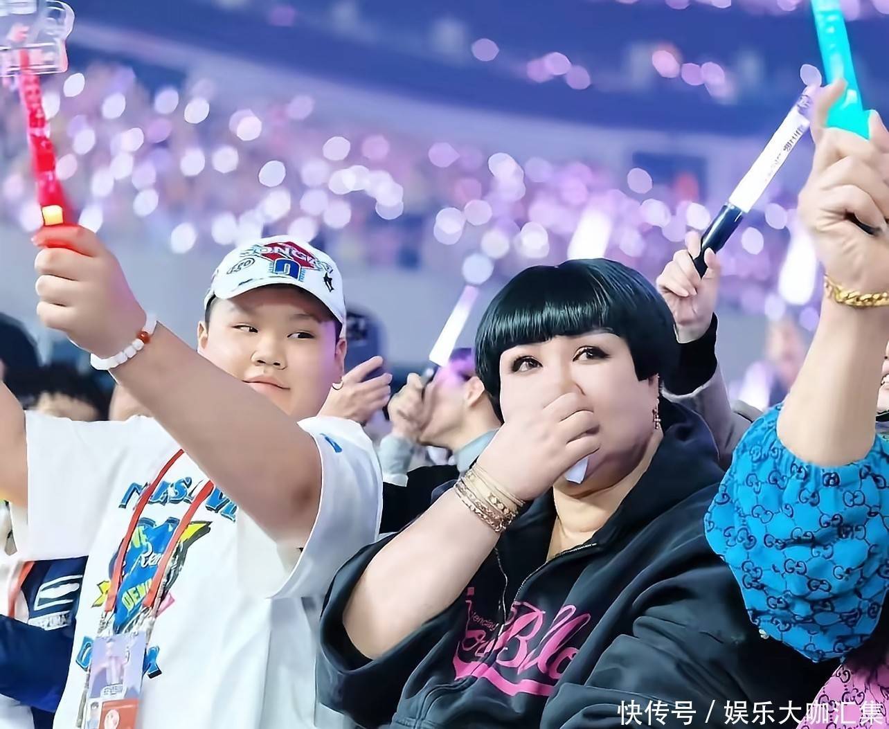 当现场大屏幕切换至王惠母子所在区域时,全场瞬间沸腾。郭汾阳略显羞涩地面对镜头,却在母亲耳边接连亲吻了四次,动作自然而亲密。