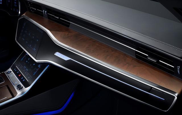 坐进座舱的瞬间,一汽奥迪A6L便以细节传递豪华温度。"突破科技 启迪未来"的理念在此具象化:流线形仪表盘与黑色面板无缝衔接,两块MMI触控响应显示屏略向驾驶员倾斜,顶部屏幕关闭后与深色饰面相融,仿佛将科技感"藏"进优雅里,既不喧宾夺主,又触手可及。