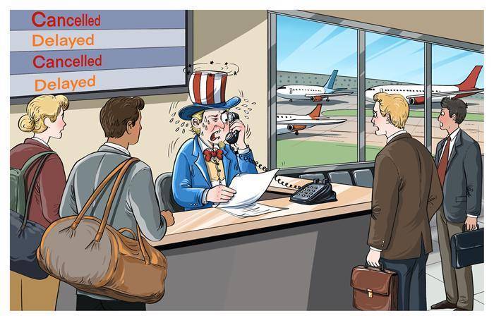 这次持续时间最长的“停摆”对美国民航业造成灾难性的打击。自“停摆”以来,空中交通管制员和机场安检人员被迫无薪工作,请假人员日渐增多,民航业人手短缺。多个主要机场的航班延误或取消,截至11日上午,美国境内已有超过1100趟航班被取消、850趟航班延误。