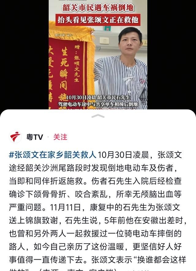 对于这件事当事人表示非常感激张颂文和帮助他的人,并且说当时清醒过来后看到有人帮助自己,都是不认识的,心里面非常感动。