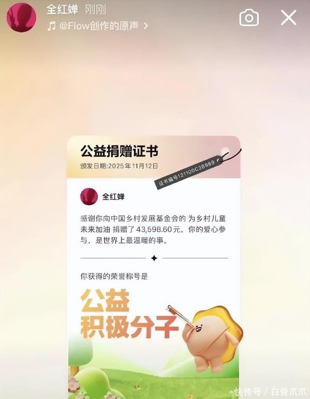 她在直播间中和大家分享了自己所关注的一些项目,直播结束后,她晒出了自己的公益捐赠证书,这场直播真是太有意义了。