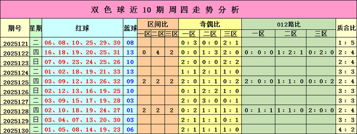 红一区(01-11):上期该区开出3个01、05、08,上周四该区开出2个02、10,最近10期该区开出20个奖号,最近10期星期四该区出现4奖号,近10期断区1次,近10期星期四断区1次,本期注意该区落号,排除断档。最近10期该区奇偶比为11:9,其中星期四分别开出奇偶比为0:0、2:0、0:2,奇偶数号码相对平出。最近10期星期四该区号码012路比为2:1:1,本期该区重点关注2码:02、09。