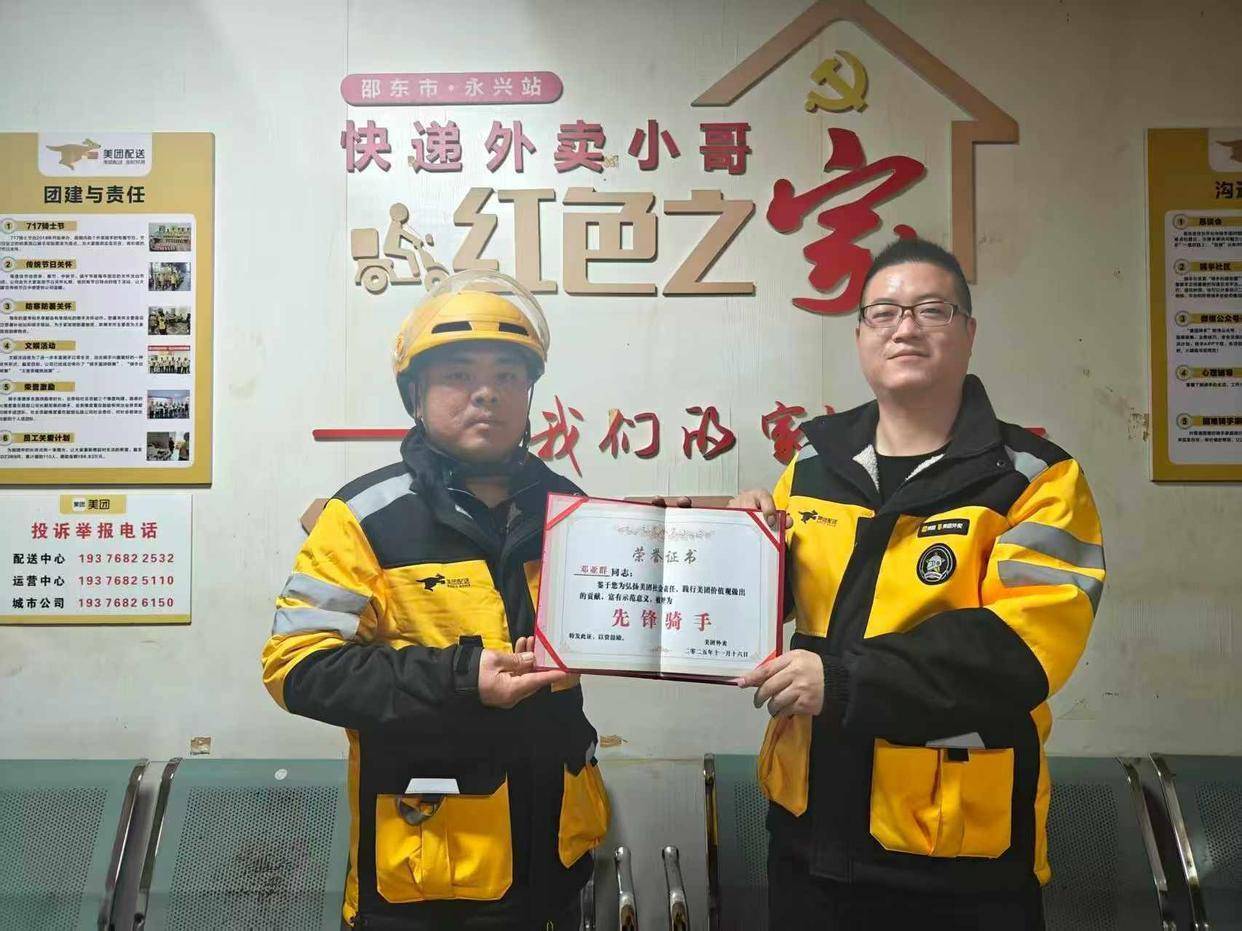 △邓亚群获得“先锋骑手”荣誉证书。