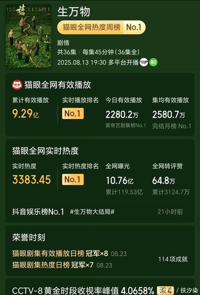 剧集未播先热,在优酷的预约量突破700万,创下平台纪录。首播后收视率一路走高,CSM全国网平均收视率达1.2804%,成为央八近五年古装剧的收视冠军。在 IMDb开局获得9.1分 的高分, 豆瓣评分也达到7.1分 。观众普遍赞誉其电影级质感、紧凑的剧情以及演员的出色演绎最靠谱股票配资平台,被认为是权谋剧的又一力作。 杨幂《生万物》:年代剧中的女性成长史诗